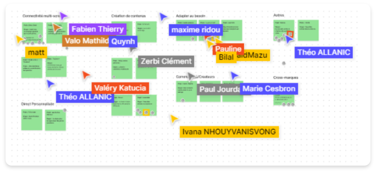 Apres notre analyse et avec une vision plus claire sur le positionnement de la marque, son écosystème et des autres insights importants à prendre en compte, nous avons commencé l'étape d'idéation, où nous sommes passé par plusieurs ateliers afin de diverger et converger toutes les différentes idées en se focalisant sur chaque problématique du briefs, plus d'autres points d'amélioration trouvés.