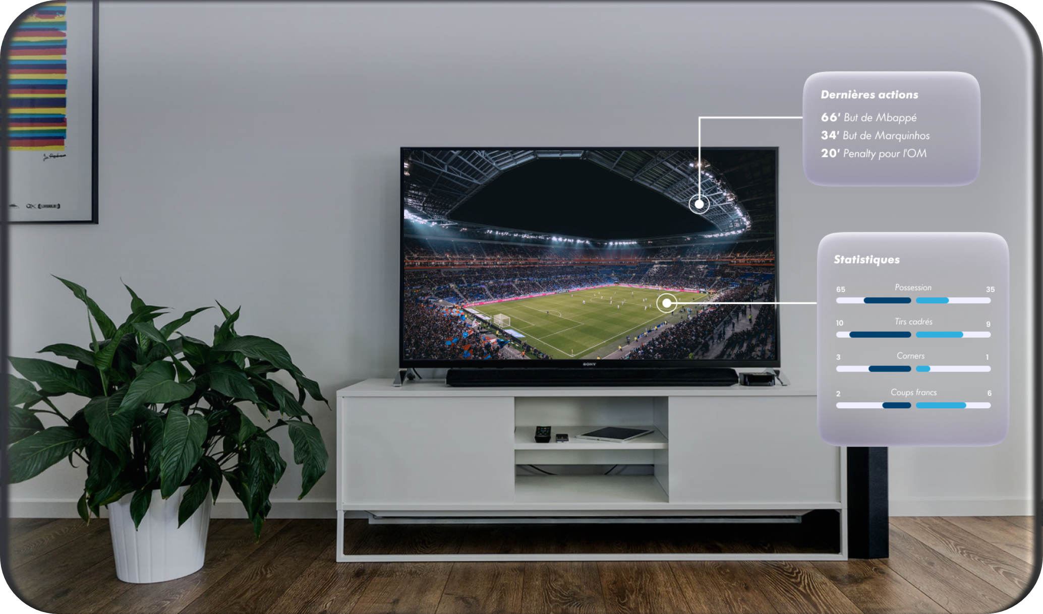 Avec les informations contextuelles et les contenus additionnels sur la diffusion, une interface en réalité augmentée.